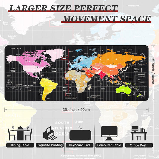 Ultimate XXL Gaming Mouse Pad - 35.4"x15.7" World Map Design, Non-Slip & Waterproof...